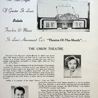 An advertisement for the Union Theatre, featrued in "Theatre-of-the-Month", in attempt to reach out to teens for "current" showings. On the back there is an interesting Fritos advertisement with a caption in possibly another language which is translated in English