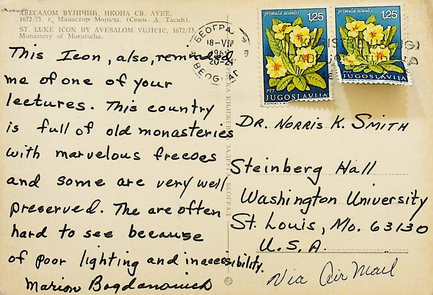 Icon postcard from Moraca (Monastery), Yugoslavia