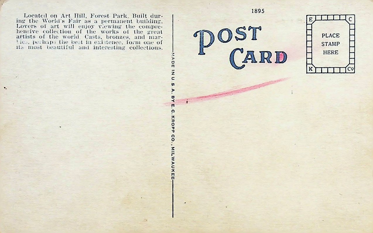 Part of Postcard of St. Louis Art Museum, Forest Park, St. Louis, MO