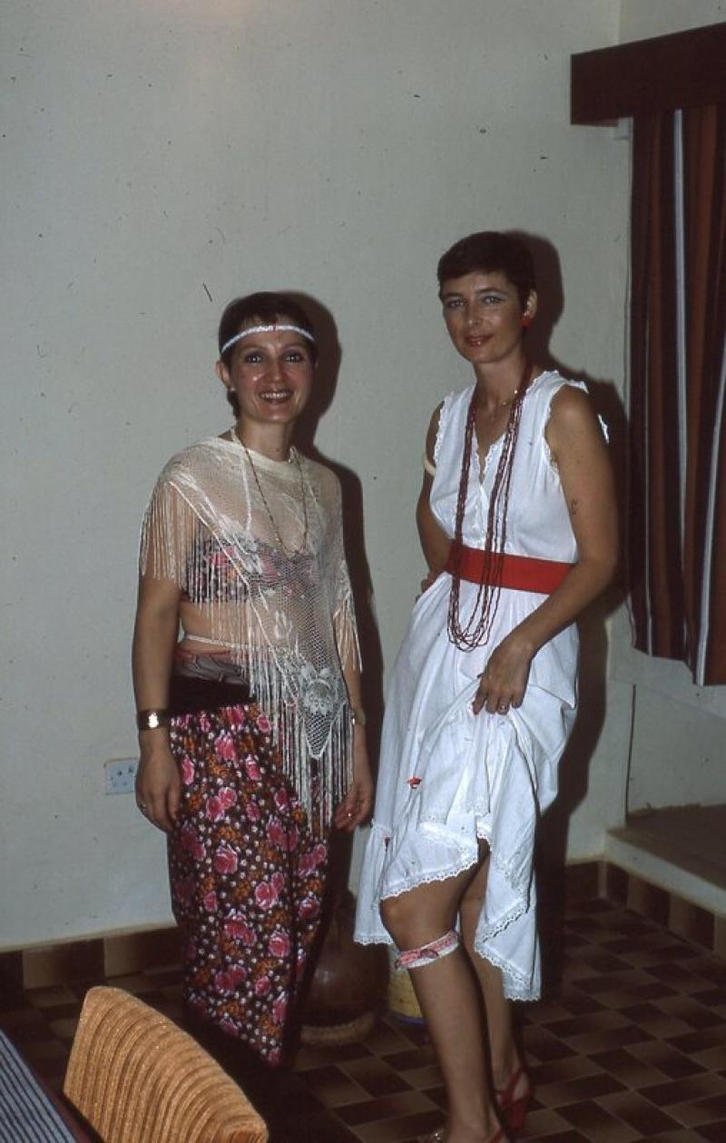 A picture of two women in costumes