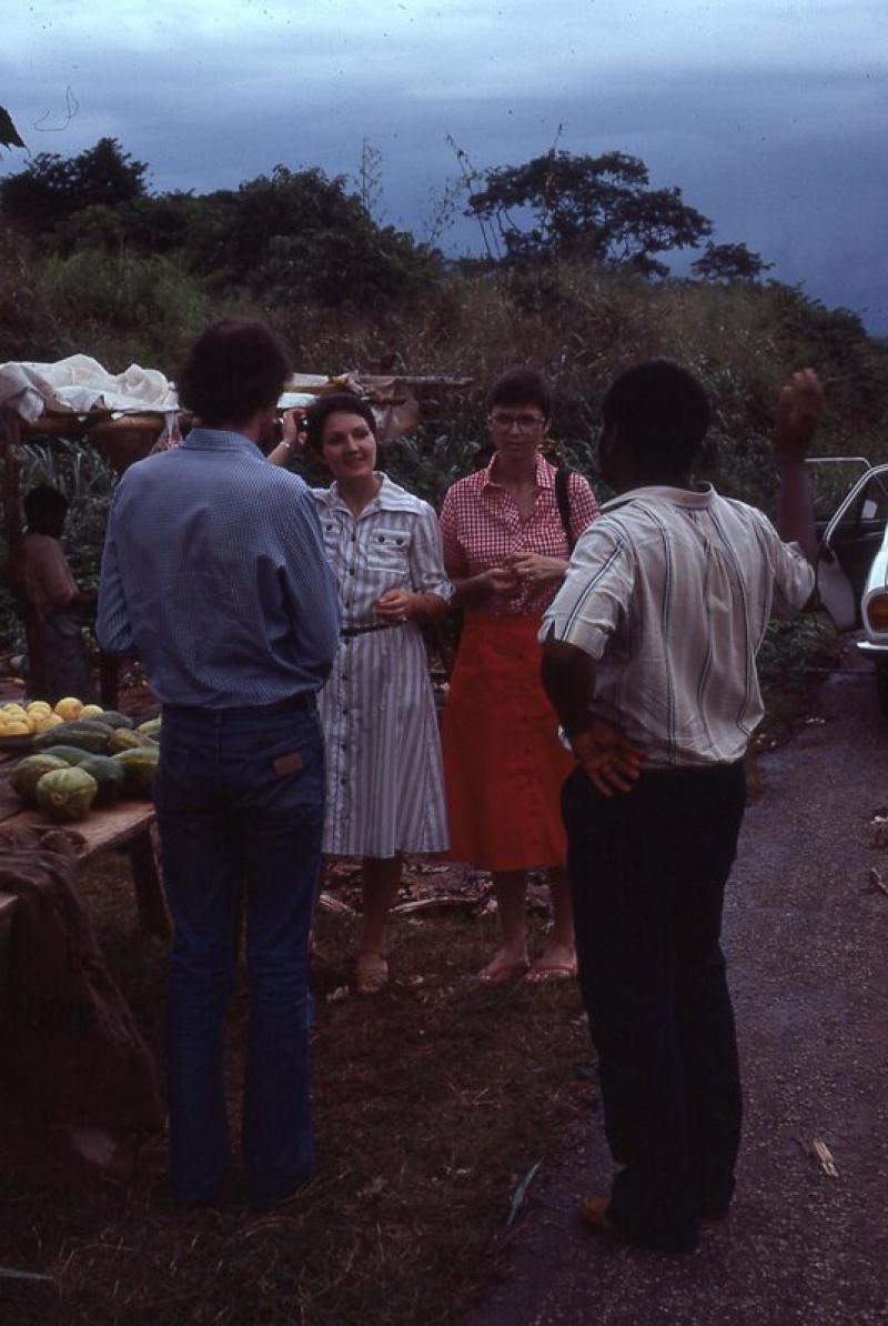 A picture of two women at a market