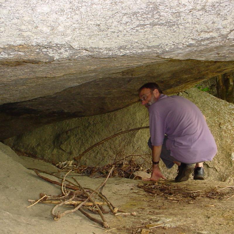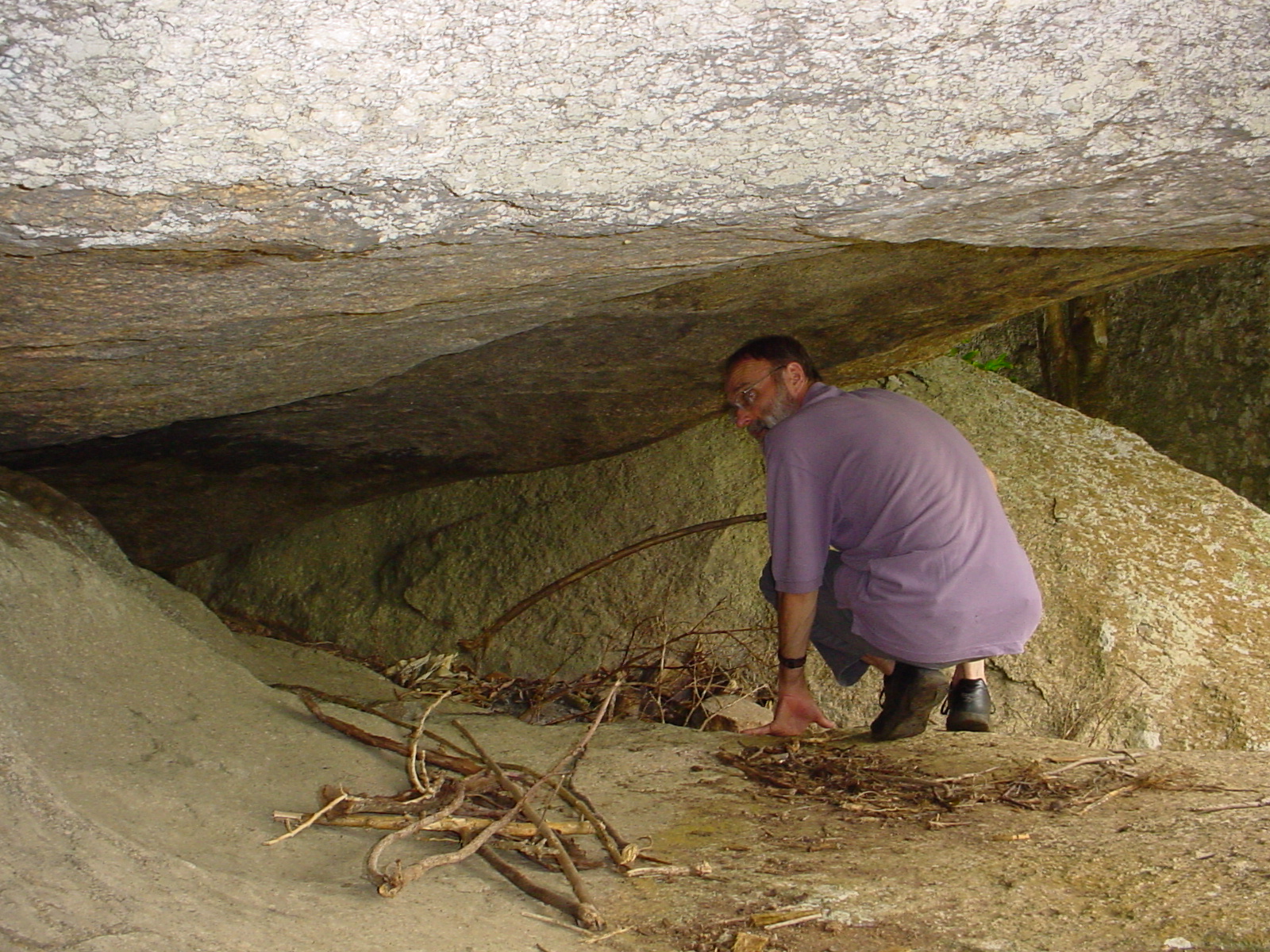 Photo of Ron Schaefer in a rockshelter in Ososo