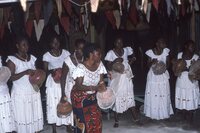 A picture of women performing at a ceremony
